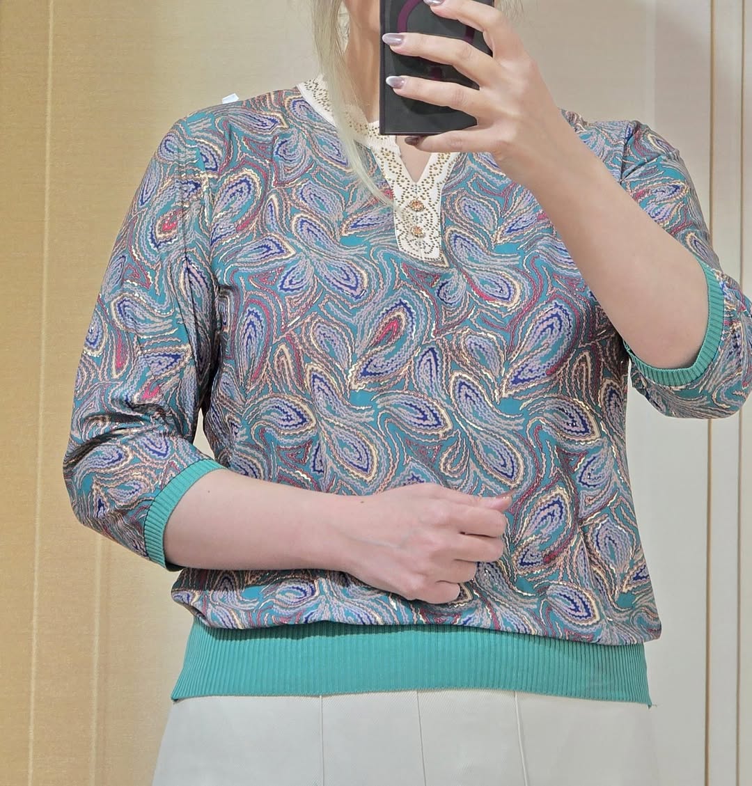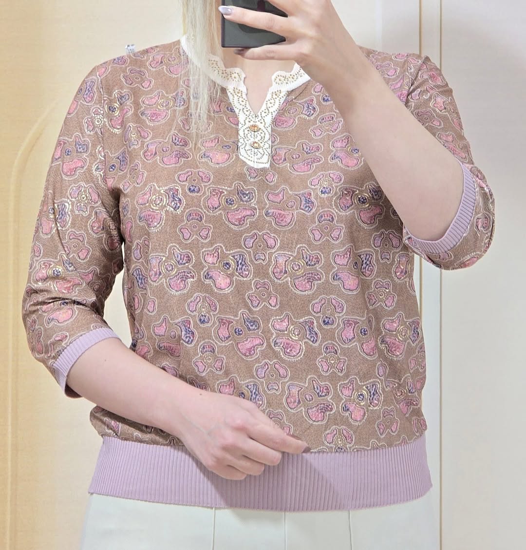 شومیز طرحدار آستین سه‌ربع سایز ۴۸